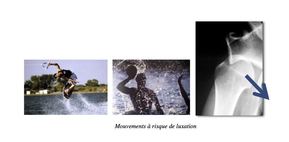 L’articulation gléno-humérale est l’articulation du corps humain la plus mobile mais aussi la plus instable… En effet, la stabilité n’est pas assurée par des parois osseuses, comme la tête fémorale dans le bassin, mais par des parties molles (bourrelet glénoïdien, ligaments gléno-huméral moyen et inférieur). De plus, il est possible de comparer cette articulation à une balle de golf sur un «tee». En cas de luxation c’est-à-dire «déboitement», la tête humérale se déplace en avant de la glène sur le rebord antéro-inférieur, pouvant provoquer une lésion de ce «tee». Après réduction par manœuvre douce, la tête humérale est donc moins stable et en cas de traumatisme plus mineur, elle se luxera de nouveau avec aggravation des lésions de la glène et ainsi de suite jusqu’à provoquer des luxations à répétitions.