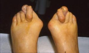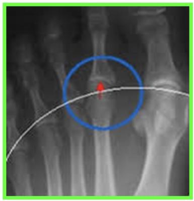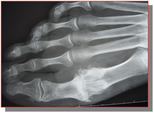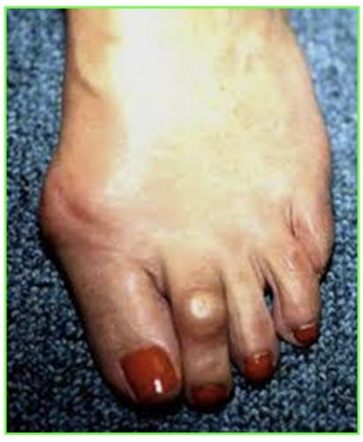 Saillie douloureuse de la face interne de l’articulation métatarso-phalangienne déformation, bursite, douleur