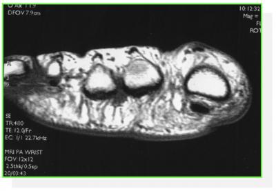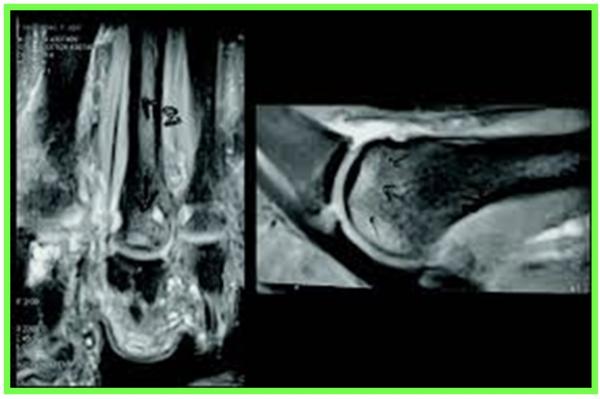 On peut avoir recours aux scanners, échographies et IRM pour confirmer les lésions des articulations, des tendons, des plaques plantaires