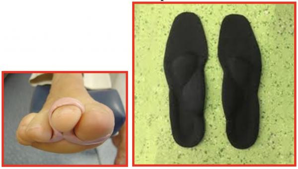 Chaussage adapté : chaussures plus larges, plus souples et amortissantes, talons moins hauts).
