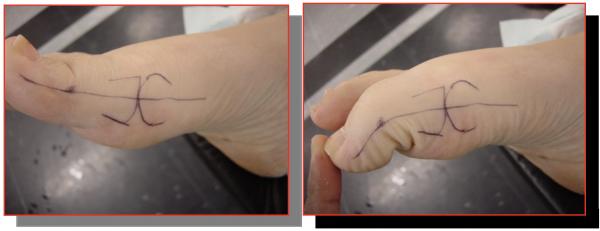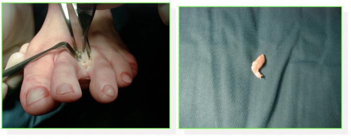 Le geste chirurgical principal consiste à ré-axer le cinquième rayon en déplaçant vers l’intérieur la tête et/ou une partie du métatarsien supprimant ainsi la saillie osseuse sous la peau.