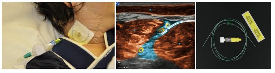 Objectif : placer un cathéter relié à une infusion continue (diffuseur élatomérique) sous contrôle échographique au contact d’un tronc nerveux ou d’un nerf pour obtenir une analgésie locorégionale (segment de membre )